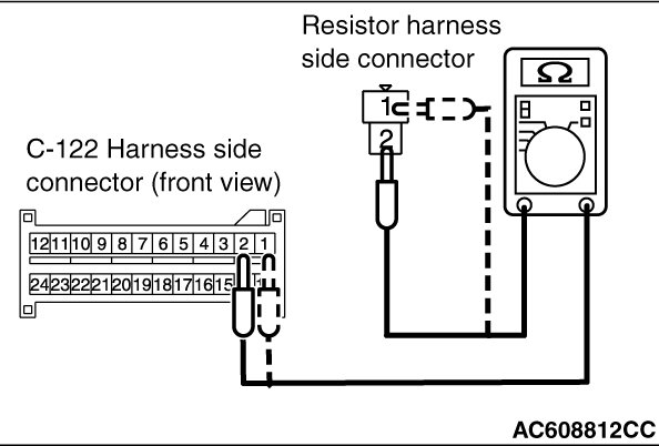 - SRS-ECU connector C-122 (terminal No.2) and the special tool (terminal No.2)