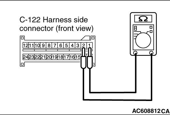 (5)Check for continuity between C-122 harness side connector terminals 1 and 2.