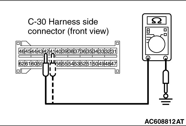 (5)Check for continuity between C-30 wiring harness side connector terminal No. 41, 42 and body ground.
