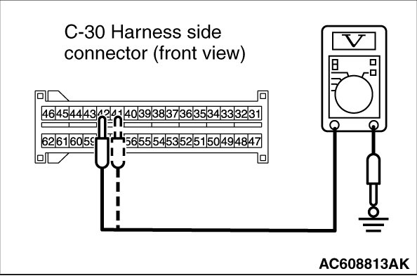 (7)Measure the voltage between the C-30 wiring harness side connector terminal No. 41, 42 and body ground.
