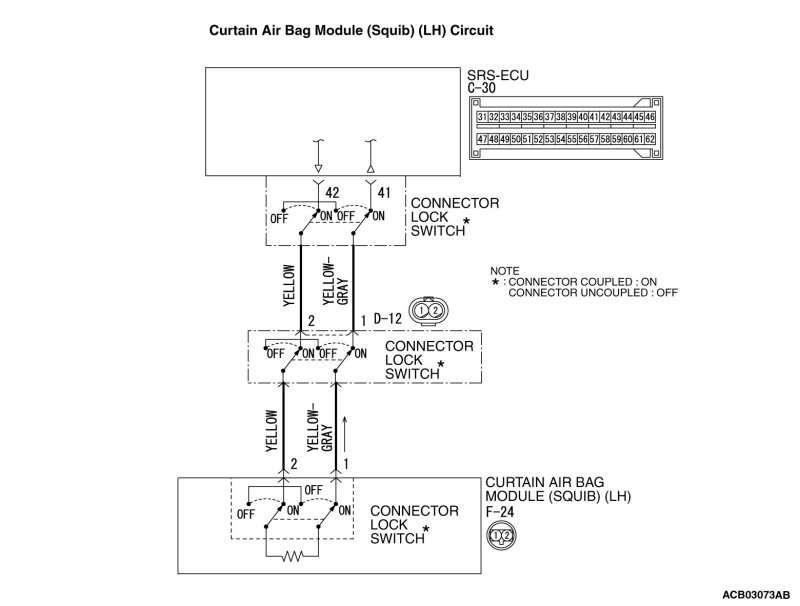 - The ignition signal is input to the curtain air bag module (LH) to inflate the curtain air bag.