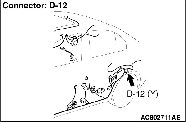 Insert the probe of resistor harness, to which the dummy resistor is installed, from the back of D-12 intermediate connector (floor harness side).