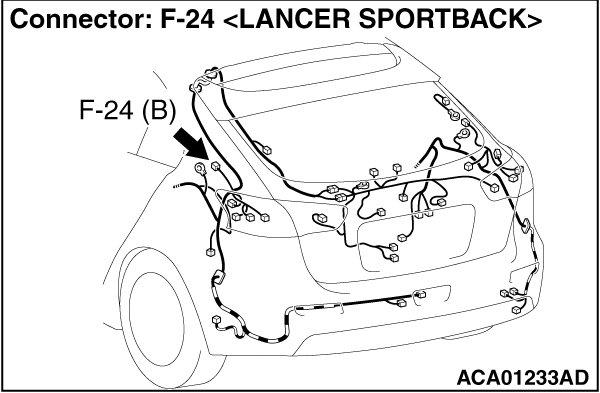 To prevent the air bag from deploying unintentionally, disconnect the curtain air bag module connector F-24 to short the squib circuit.