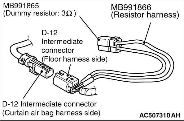 To prevent the air bag from deploying unintentionally, disconnect the intermediate connector D-12 to short the squib circuit.