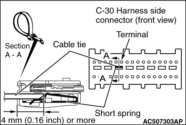 Insert a cable tie [3 mm (0.12 inch) wide, 0.5 mm (0.02 inch) thick] between terminal 41, 42 and the short spring to release the short spring.