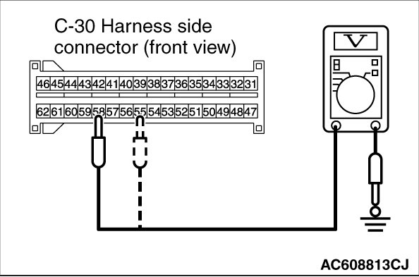 (7)Measure the voltage between terminal 55, 58 and body ground (No. B1B55 only).