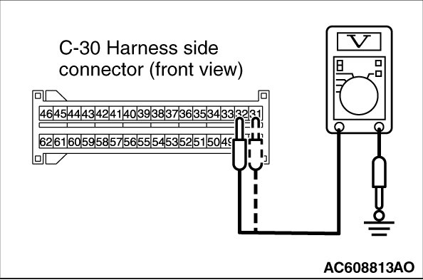 (7)Measure the voltage between C-30 harness side connector terminals 31, 32 and body ground.
