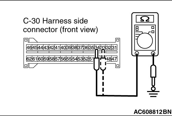 (5)Check for continuity between C-30 harness side connector terminals 33, 34 and body ground.