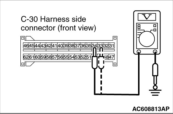 (7)Measure the voltage between C-30 harness side connector terminals 33 and 34 and body ground.