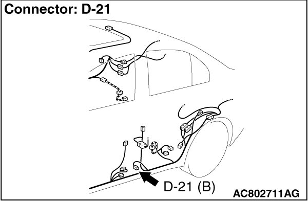 (5)Connect special tool MB991884 to the D-21 harness side connector.