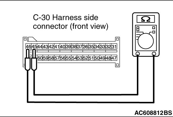 (5)Check for continuity between C-30 harness side connector terminals 45 and 46.