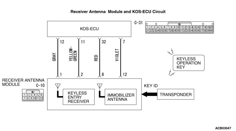 Q. Is the receiver antenna module connector C-10 and KOS-ECU connector C-31 in good condition?