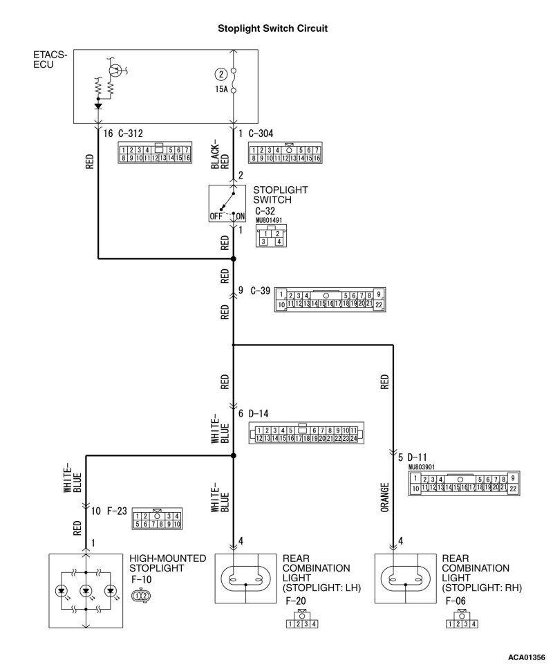 STEP 20. Check the wiring harness between C-312 ETACS-ECU connector terminal No.16 and C-32 stoplight switch connector terminal No.1