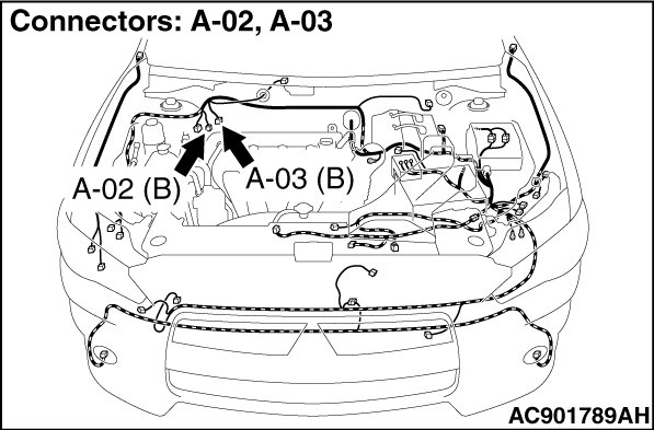STEP 6. Connector check: A-03 ABS-ECU connector, A-02 front wheel speed sensor (RH) connector