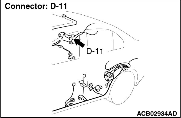 STEP 5. Connector check: A-51 ASC-ECU connector, C-39 intermediate connector, D-11 intermediate connector, F-02 rear wheel speed sensor [RH] connector