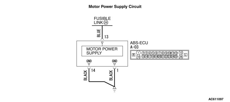 - ABS-ECU contains the power supply circuit (terminal No.13) for the pump motor.