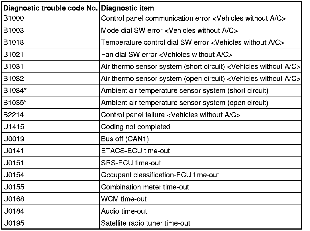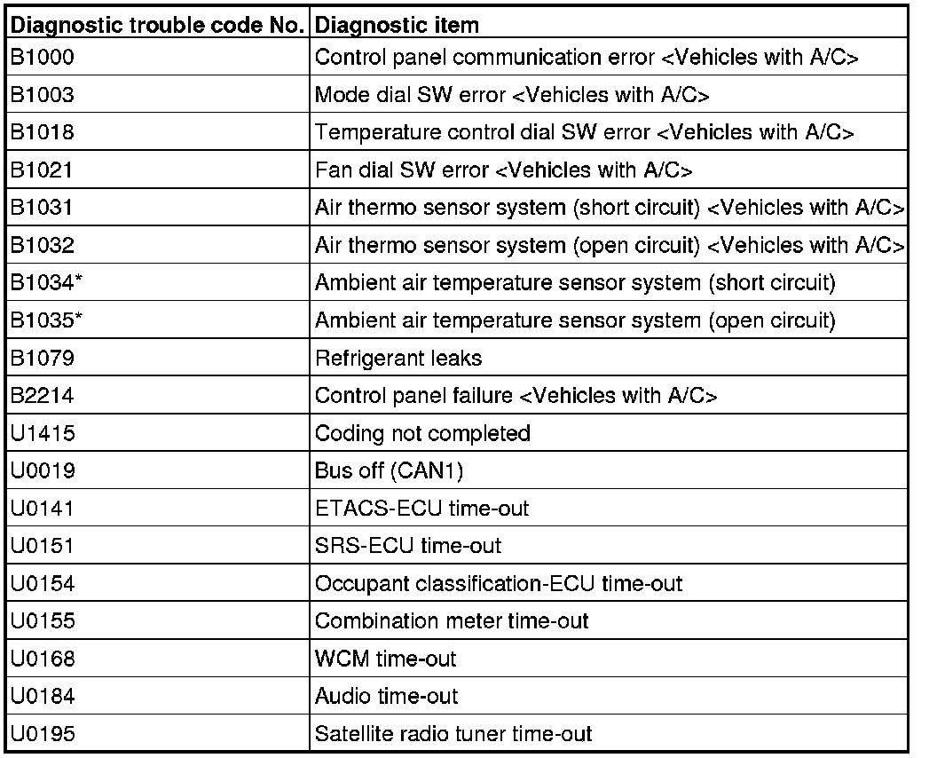 The diagnostic trouble codes marked by * are set from the ETACS-ECU.