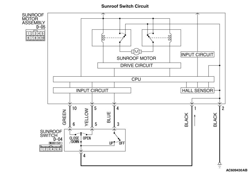 Q. Are sunroof switch connector D-04 and sunroof motor assembly D-05 in good condition?