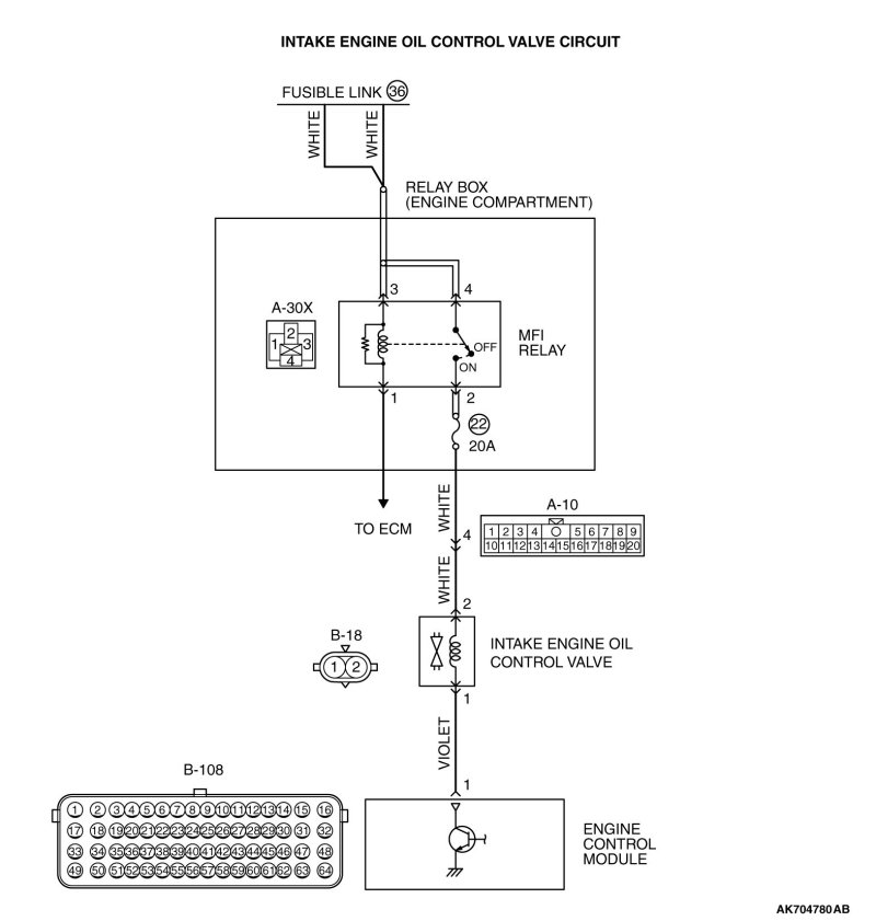 - The intake engine oil control valve power is supplied from the MFI relay (terminal No. 2).