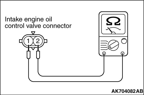 (2)Measure the resistance between intake engine oil control valve side connector terminal No. 1 and No. 2.