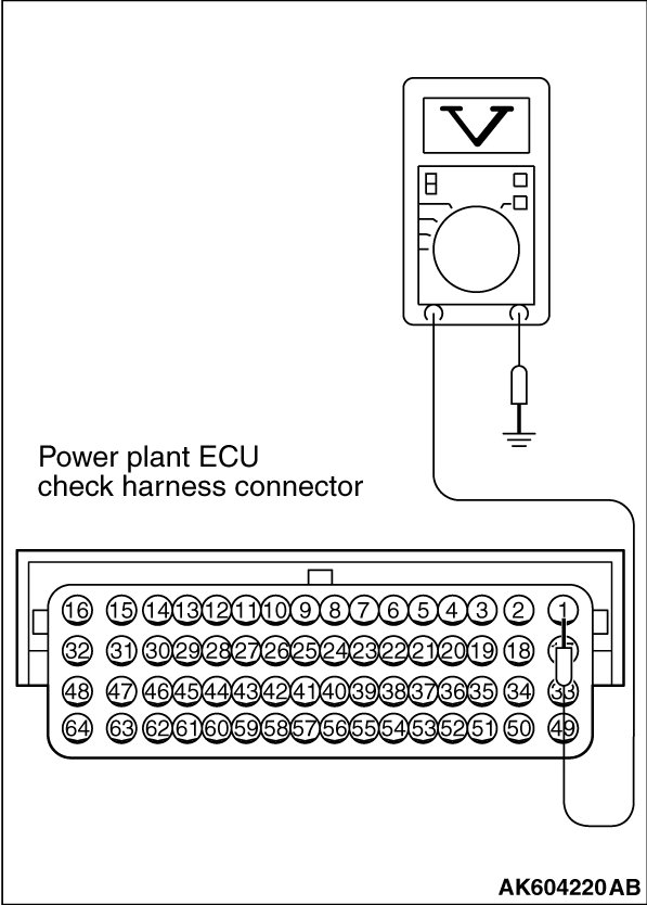 STEP 7. Measure the power supply voltage at ECM connector B-108 by using power plant ECU check harness special tool MB992110.