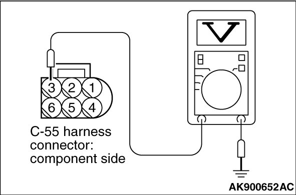 STEP 3. Measure the power supply voltage at linear air-fuel ratio sensor harness side connector C-55.