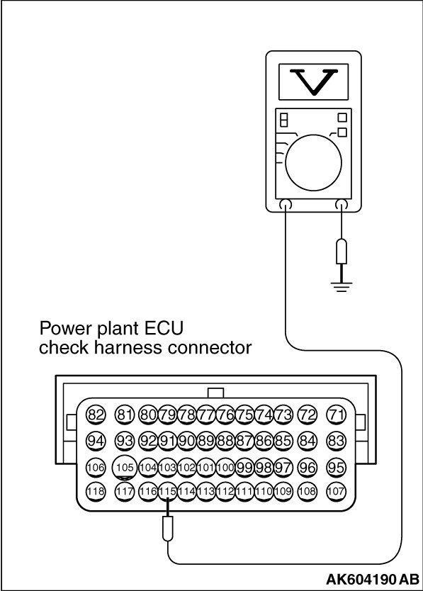 STEP 6. Measure the sensor supply voltage at ECM connector B-109 by using power plant ECU check harness special tool MB992110.
