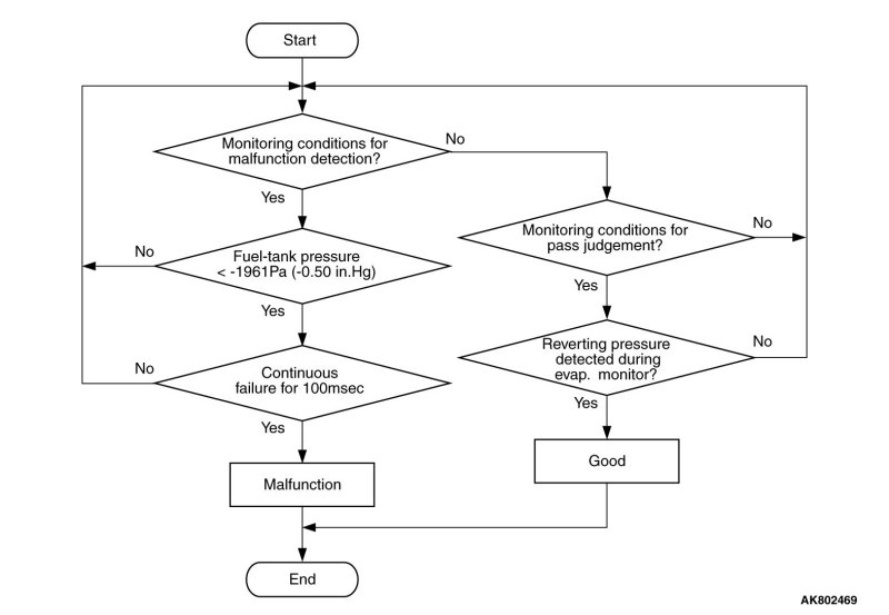 - The pressure in the fuel tank is less than -1961 Pa (-0.58 in.Hg) for 0.1 second.