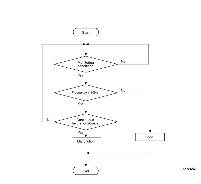 - The ON/OFF frequency of a power steering pressure switch is more than 10 Hz for 20 seconds.