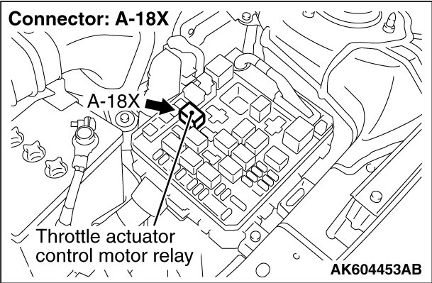 STEP 1. Check harness connector A-18X at throttle actuator control motor relay for damage.