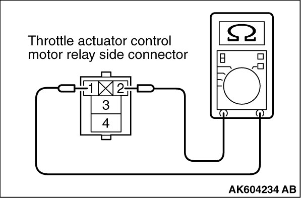 (2)Check for continuity between the throttle actuator control motor relay terminal No. 1 and No. 2.