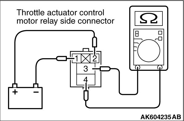- Battery positive voltage is applied to the throttle actuator control motor relay terminal (terminal No. 4).