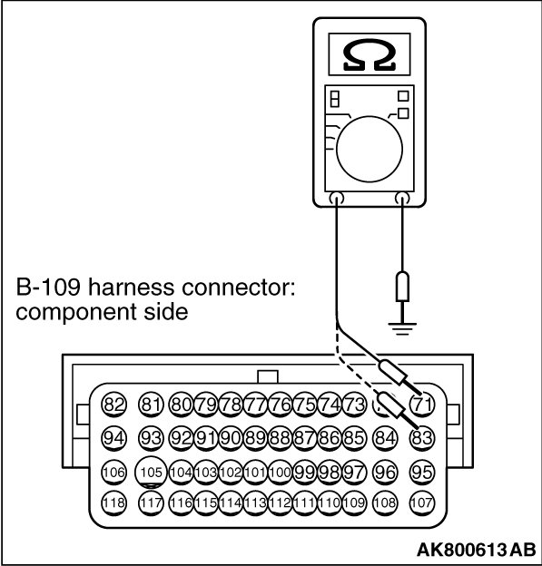 (2)Check for the continuity between terminals No. 71, No. 83 and ground.