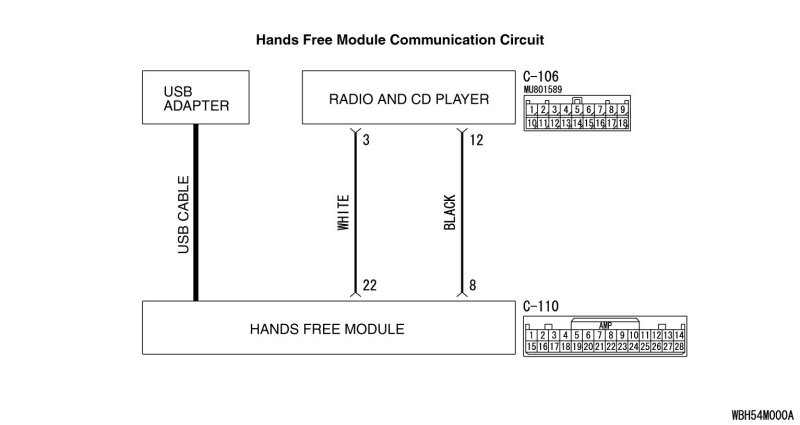 STEP 6. Check the wiring harness between hands free module connector C-110 (terminal 22, 8) and radio and CD player connector C-106 (terminal 3, 12).