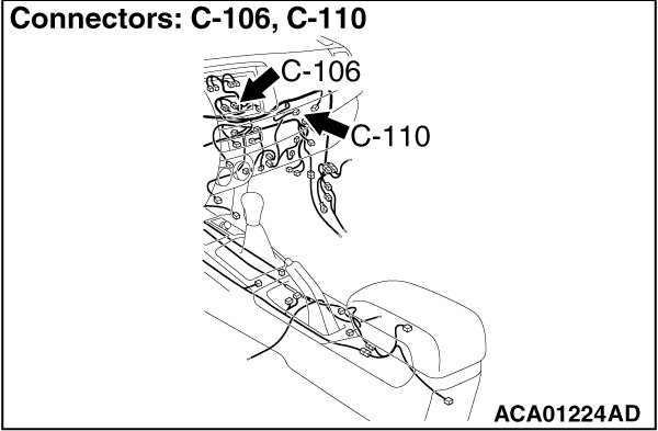STEP 5. Check hands free module connector C-110 and radio and CD player C-106 for loose, corroded or damaged terminals, or terminals pushed back in the connector.