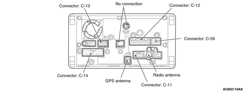 The connectors, antenna and cables connected to the multivision display are shown in the figure.