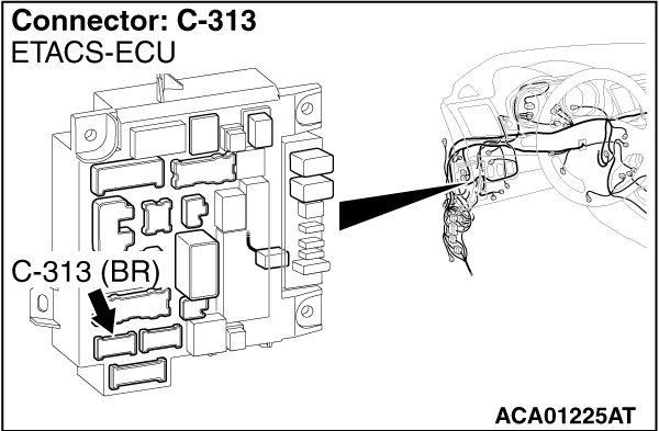 STEP 5. Check ETACS-ECU connector C-313 for loose, corroded or damaged terminals, or terminals pushed back in the connector.