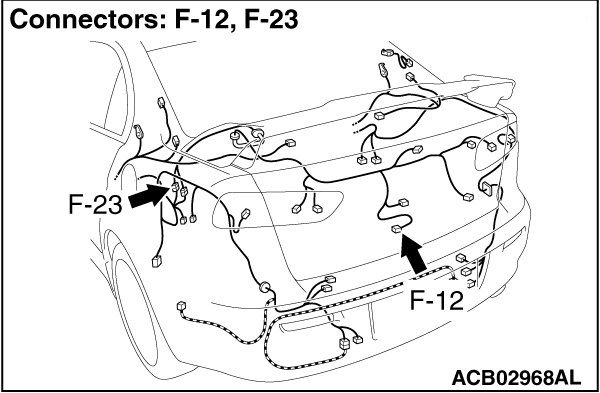 (1)Disconnect trunk lid actuator and switch connector F-12 and measure the resistance available at the wiring harness side of the connector.