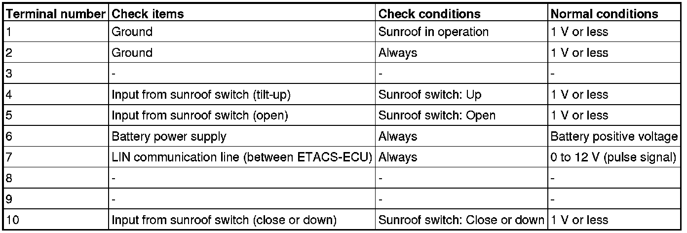 SUNROOF MOTOR ASSEMBLY TERMINAL CHECK