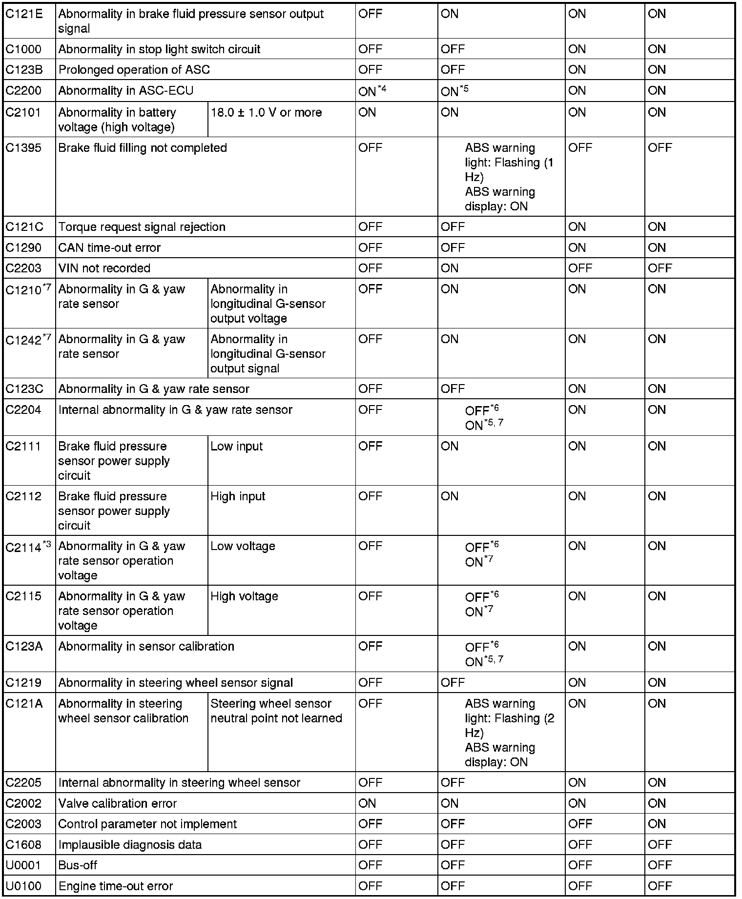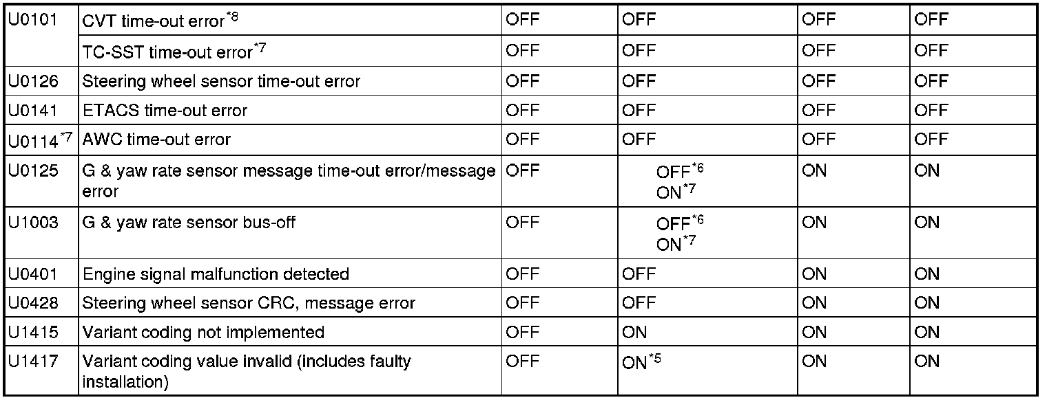 - *5: Does not illuminate when there is no effect to the ABS function.