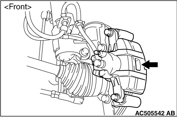 2. If the brake pad thickness is less than the limit value, replace the brake pad (Refer to Brake Pad Replacement[Except Ralliart]).