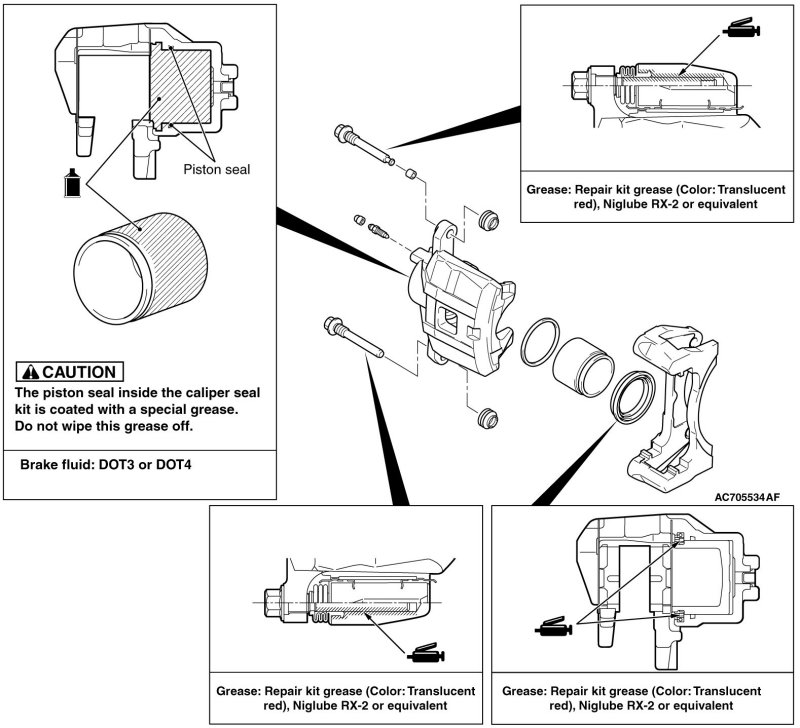 2. Clean the piston surface and cylinder inner face with alcohol or specified brake fluid.