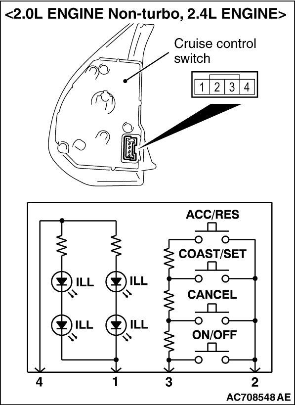 1. Remove the cruise control switch (Refer to Service and Repair) [2.0L ENGINE Non-turbo, 2.4L ENGINE]