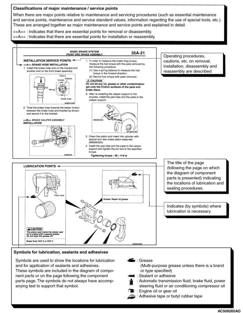 The service steps are arranged in numerical order. Attention to be paid in performing vehicle service are described in detail in SERVICE POINTS.