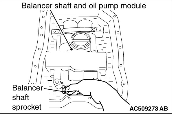 (4) Turn the balancer shaft sprocket of the balancer shaft and oil pump module clockwise four rotations or more to apply the engine oil to the entire area of the oil pump and the balancer shaft bearing.