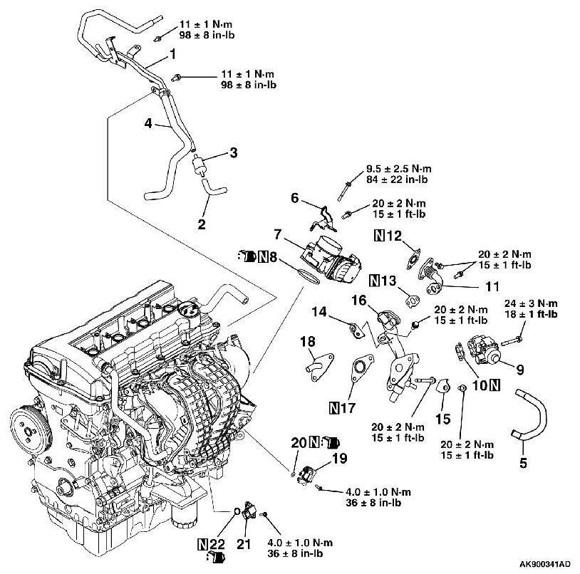 Tightening torque: 9.5 ± 2.5 Nm (84 ± 22 in-lb)