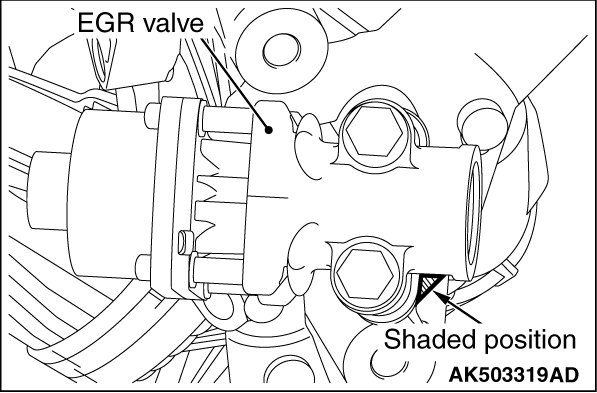 Install the Exhaust gas recirculation valve gasket with the diagonally shaded area used as the illustrated position so as not to confuse the front with the back.