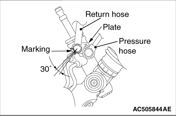 Align the pressure hose plate as shown in the figure and connect pressure hose assembly.