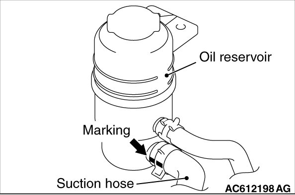 1. Align the oil reservoir side suction hose marking within the area shown in the figure and connect the suction hose.