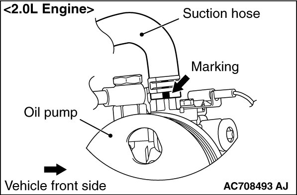 2. Align the oil pump side suction hose marking within the area shown in the figure and connect the suction hose.